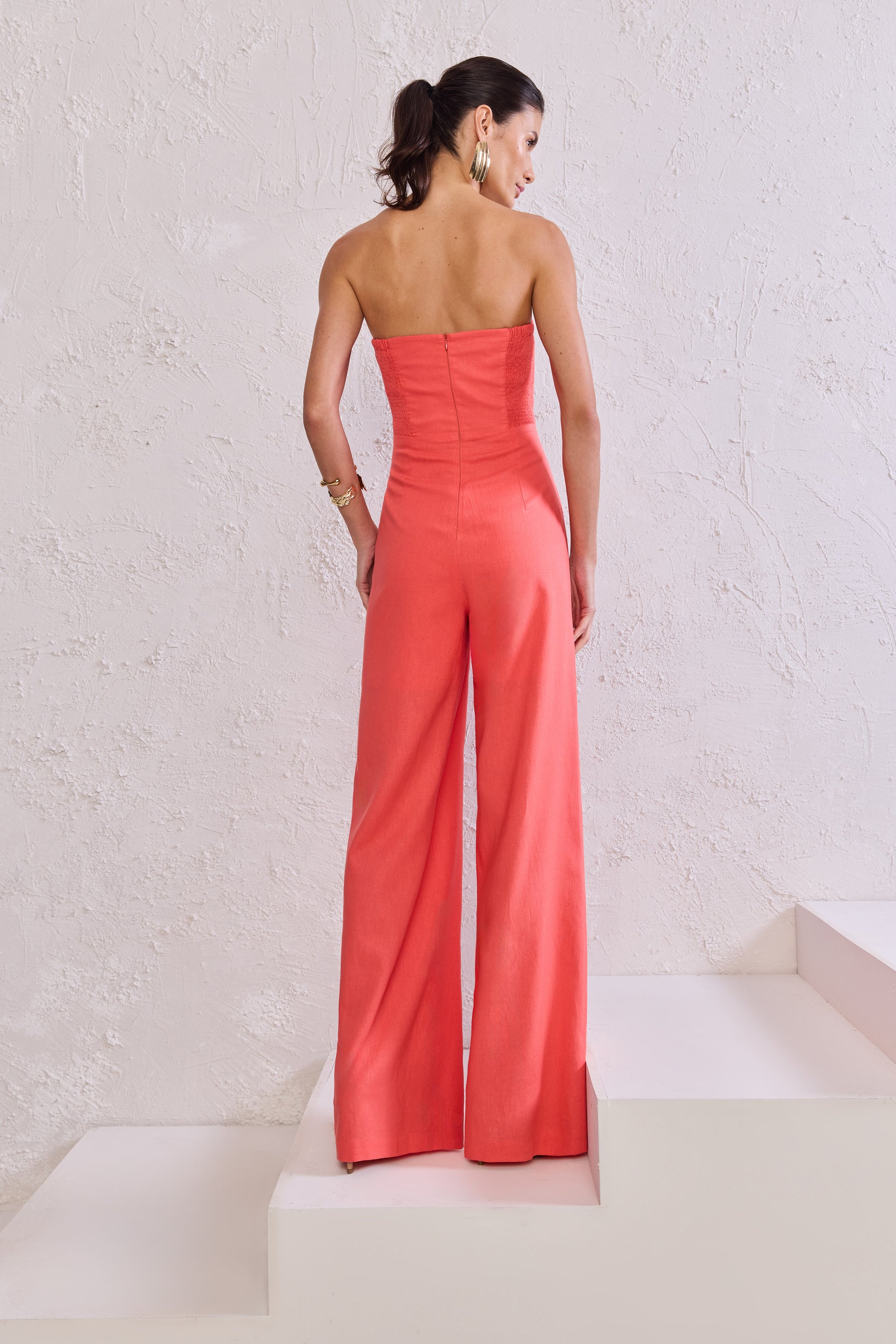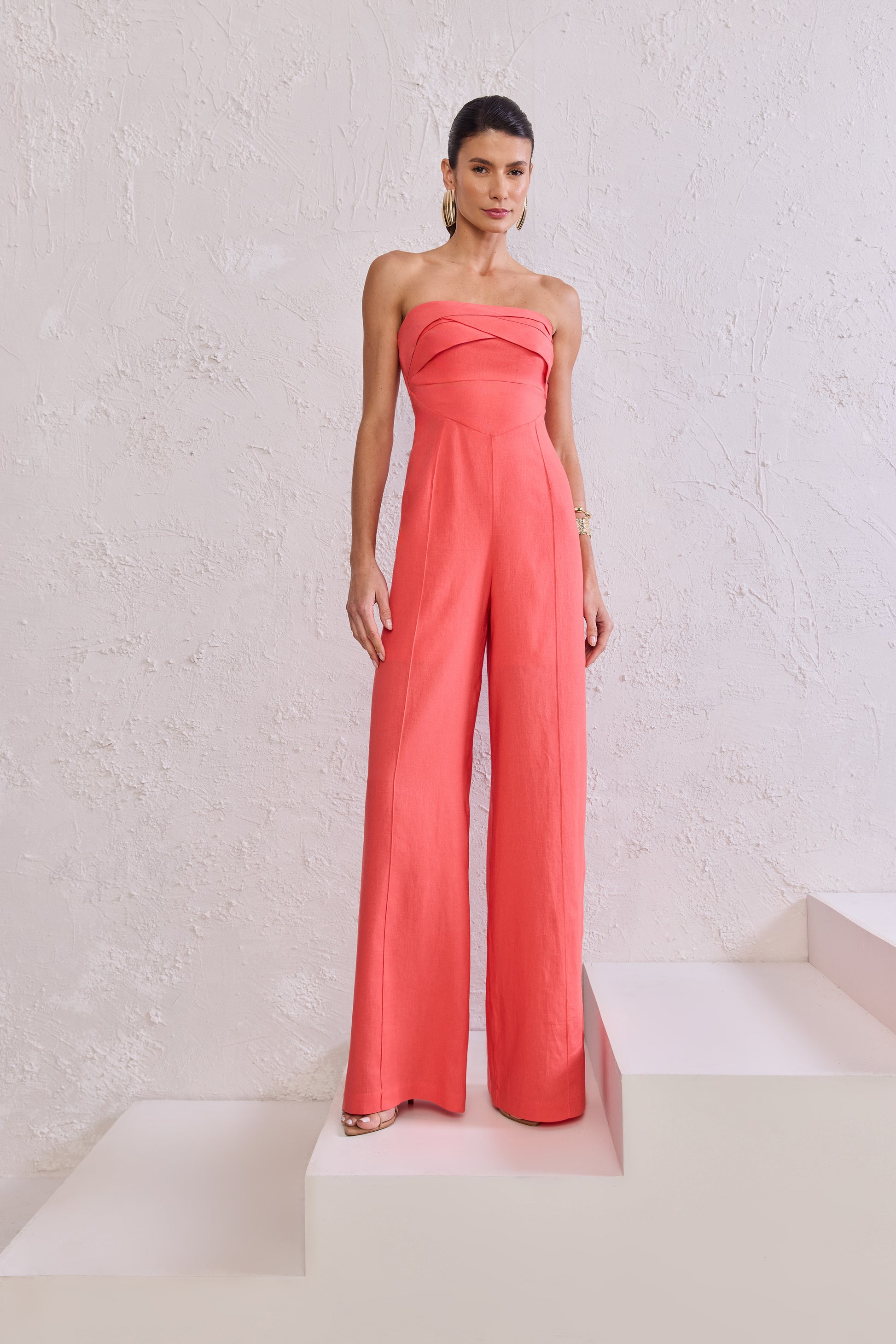 MACACÃO TOMARA-QUE-CAIA LINHO LEVE LARANJA POPCI